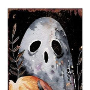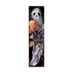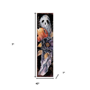 7" Black Orange Cream And Brown Solid Wood Daisies Halloween Ghost Reversible Garden Stake