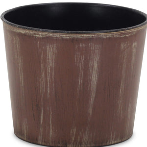 7" Brown and Ivory Textural Tone On Tone Recycled Plastic Indoor Outdoor Round Pot Planter