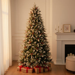 7' Full Frosted Fir Christmas Tree With Decorations