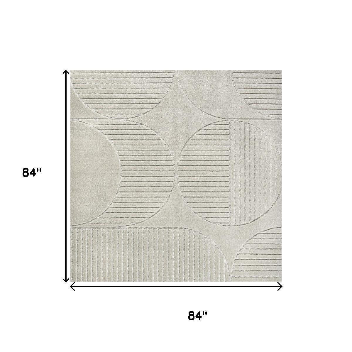 7' Ivory And Cream Square Striped Indoor Outdoor Area Rug