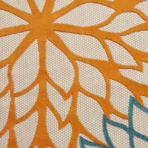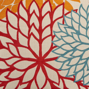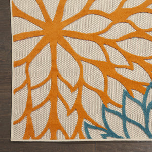 7' X 10' Ivory Green Blue Orange And Red Floral Indoor Outdoor Area Rug