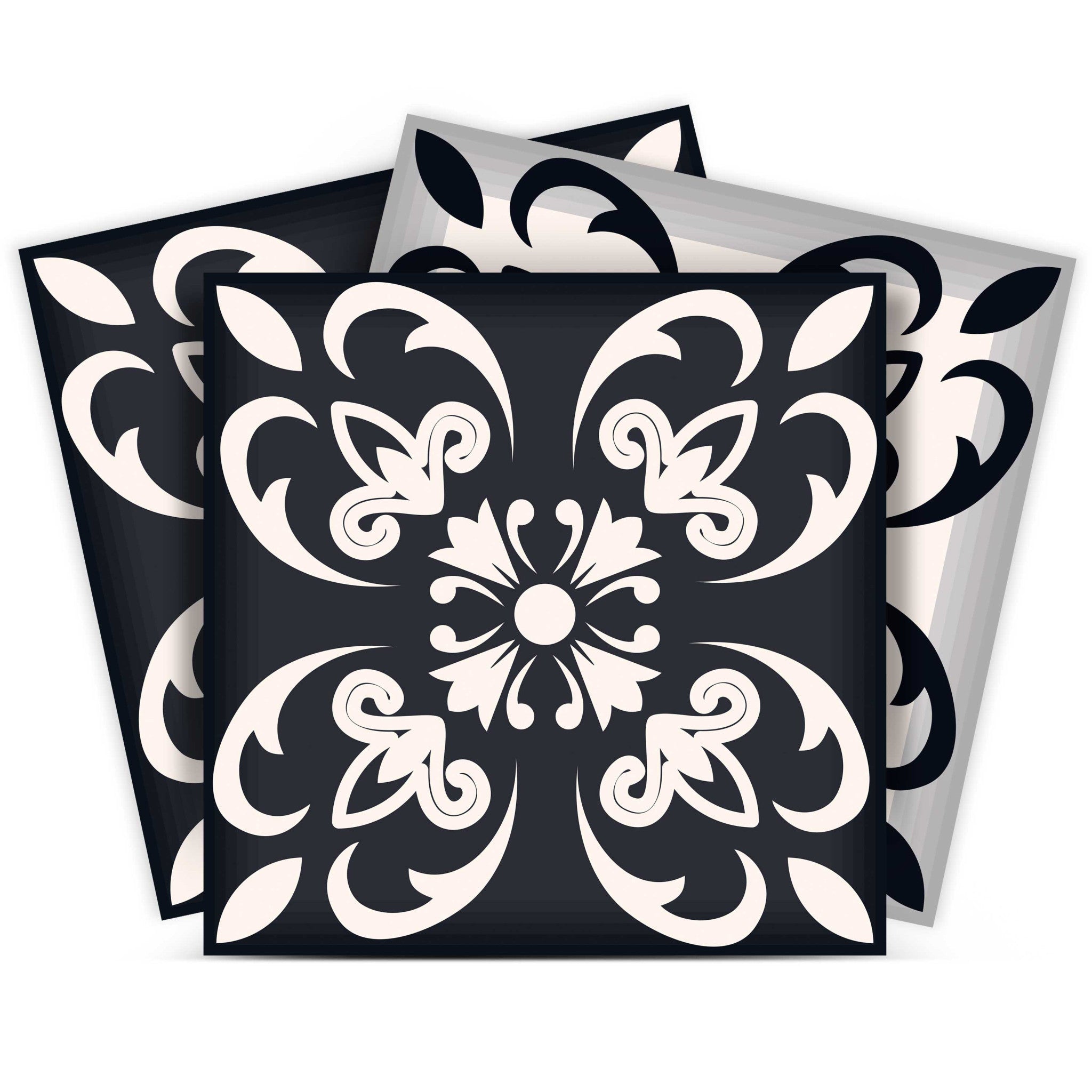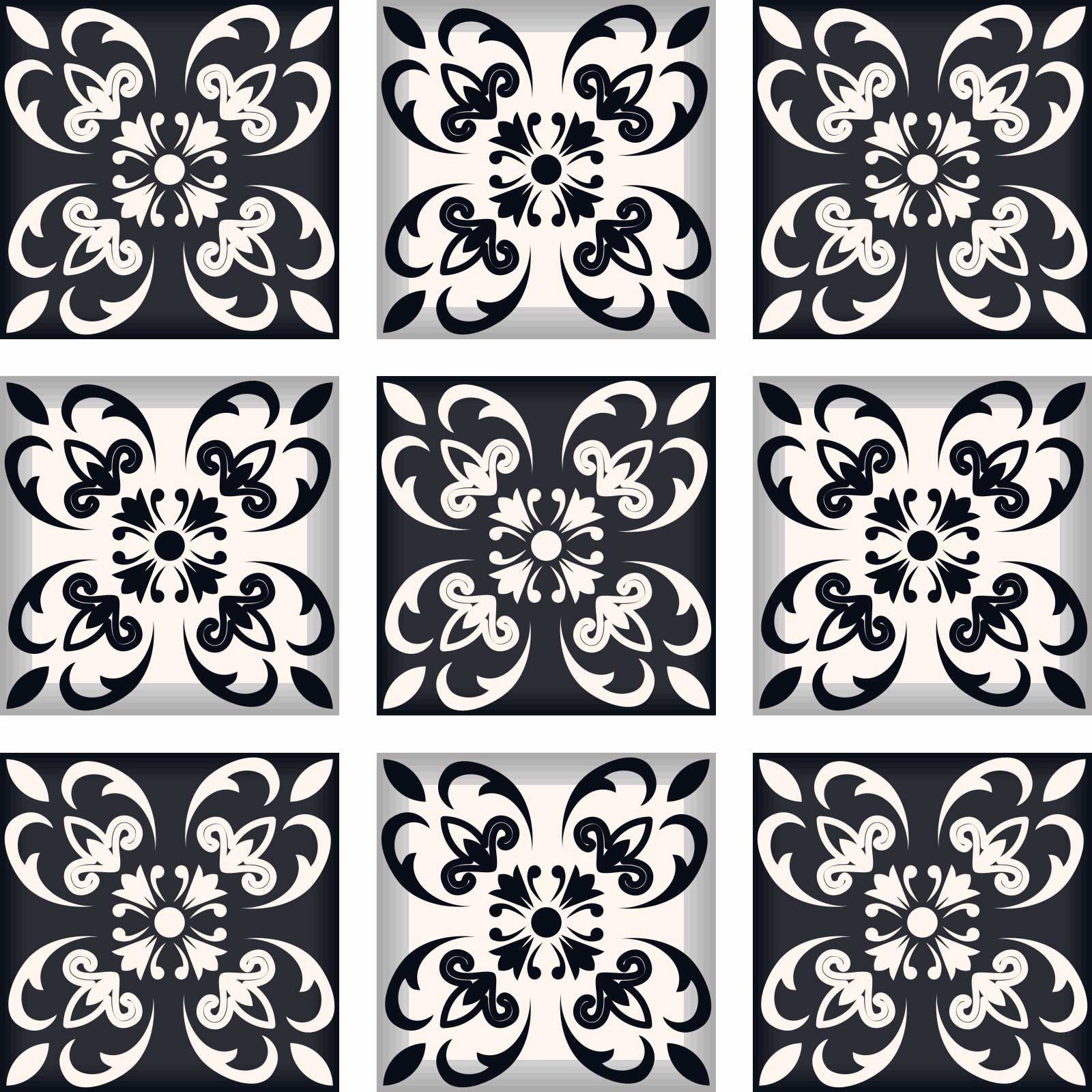 7" X 7" Black And White Quatro Peel And Stick Removable Tiles