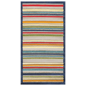 7' X 9' Ivory And Blue Striped Stain Resistant Indoor Outdoor Area Rug