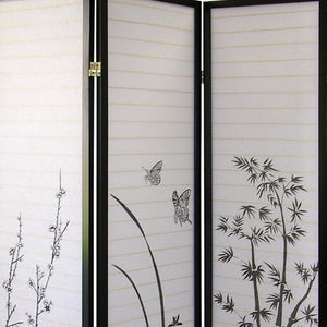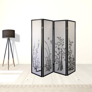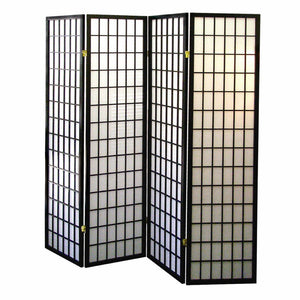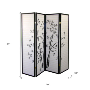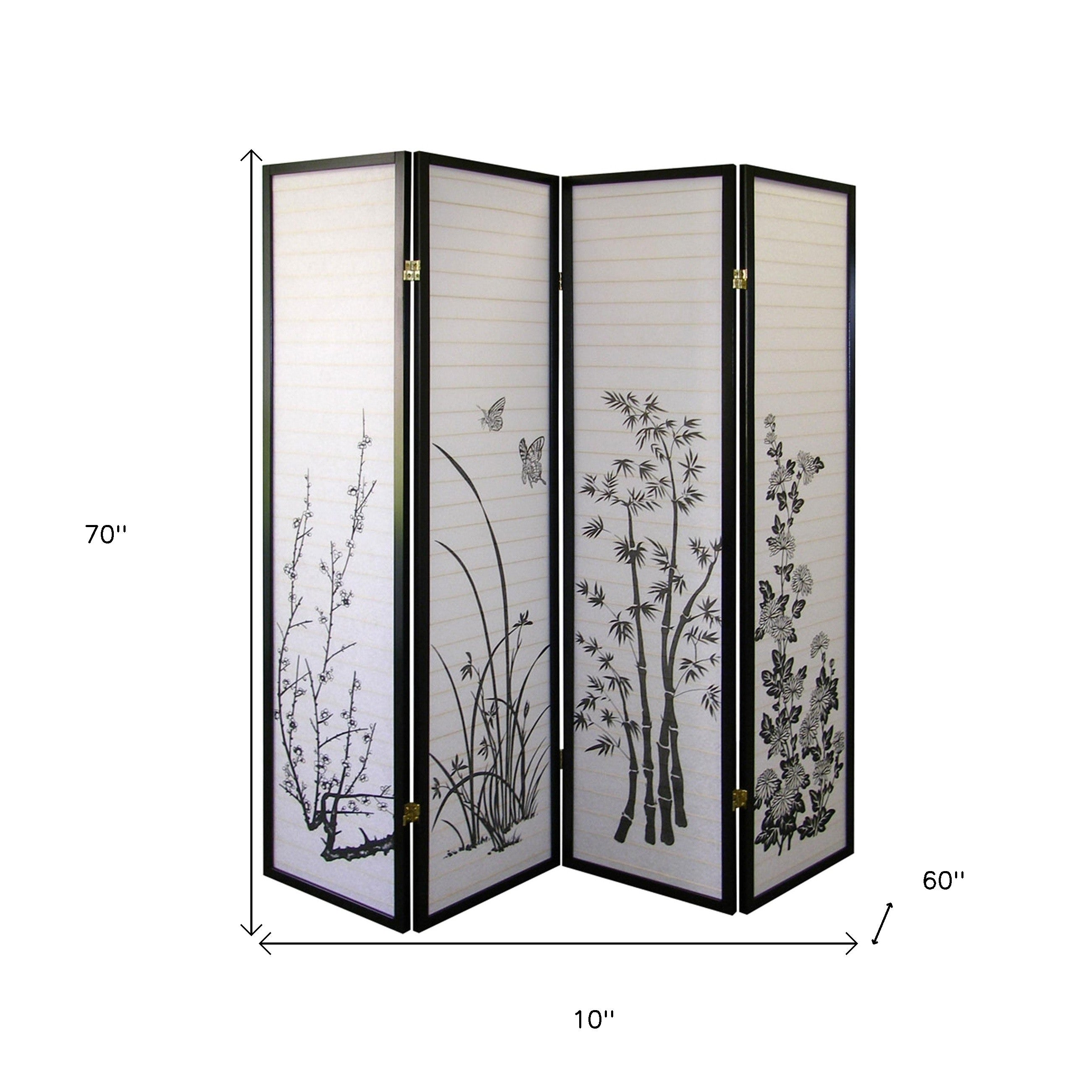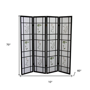 70" Black And White Heavy Duty Rice Paper Folding Four Panel Screen Room Divider
