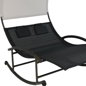 70" Black Steel Sling Outdoor Rocking Chaise Lounge With Canopy