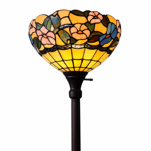 70" Green And Black Floor Lamp With Green Glass Bowl Shade