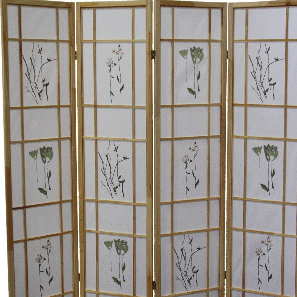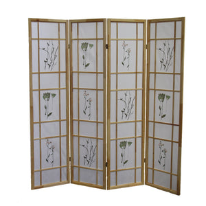 70" Natural Heavy Duty Rice Paper Folding Four Panel Screen Room Divider