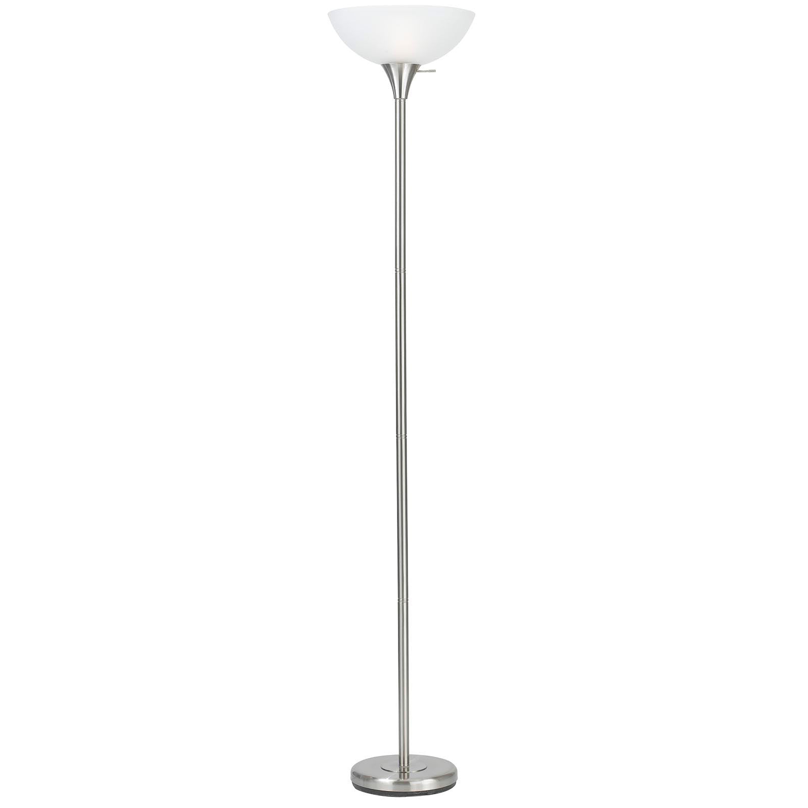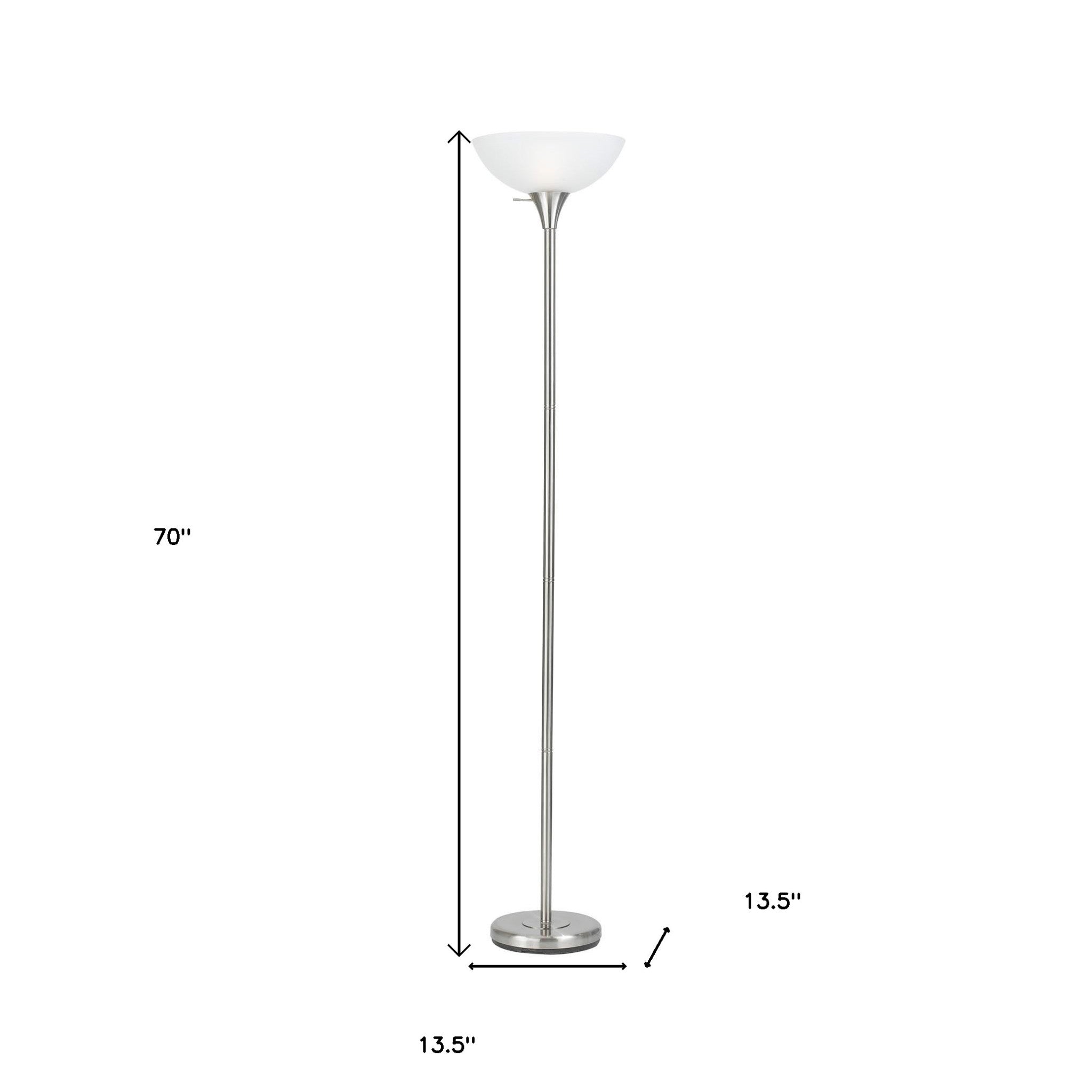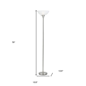 70" Nickel Metal Torchiere Floor Lamp With White Glass Dome Shade