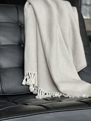 70" X 55" Gray And White Herringbone Cotton Blend Woven Throw Blanket with Tassels