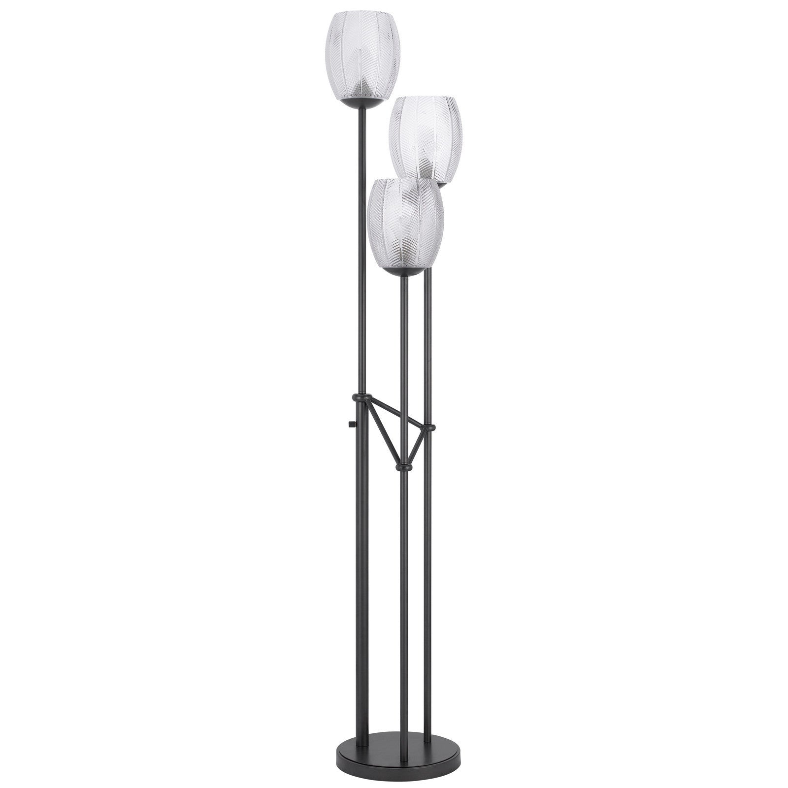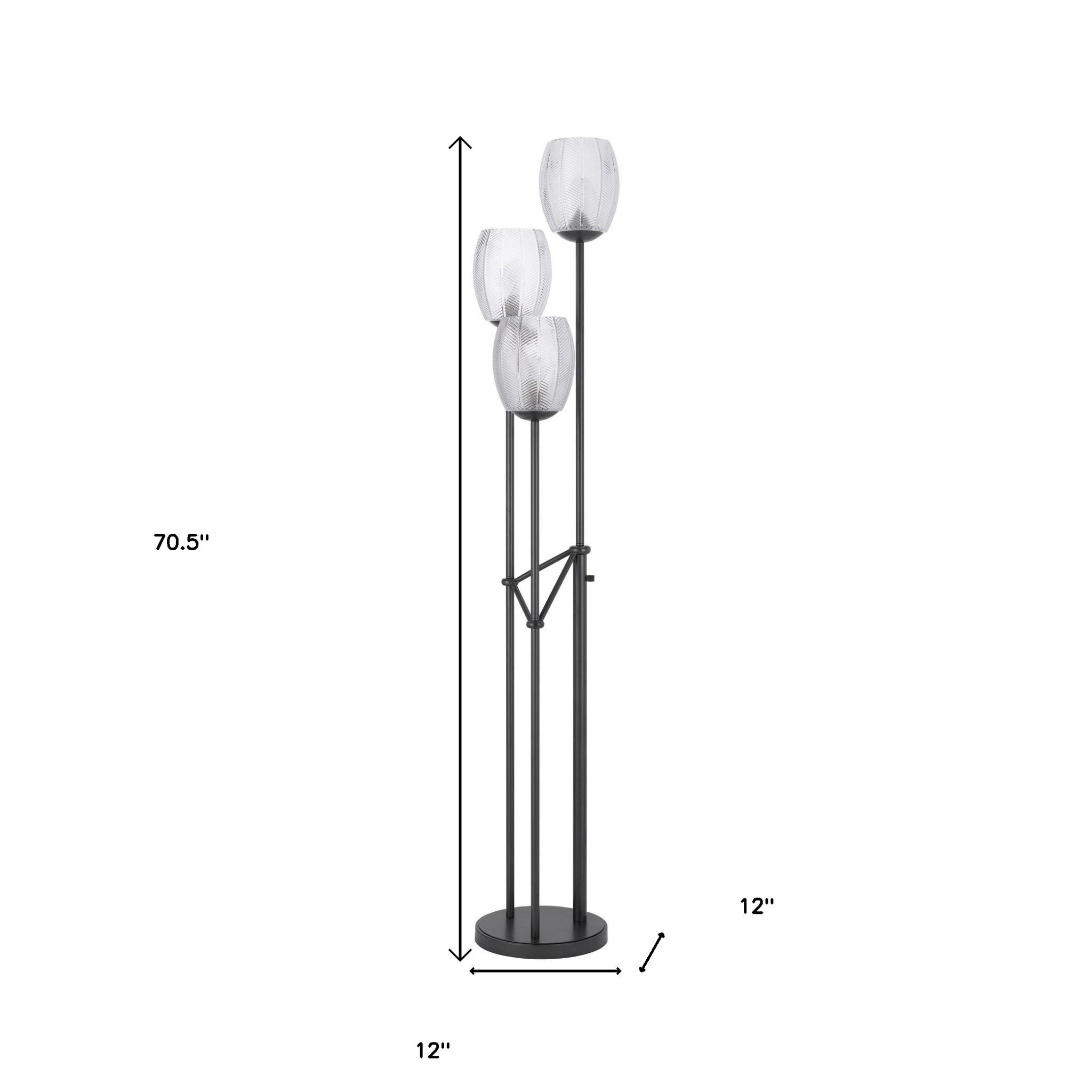 71" Black Three Light Traditional Shaped Floor Lamp With Clear Transparent Glass Novelty Shade