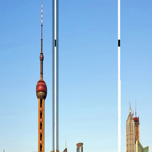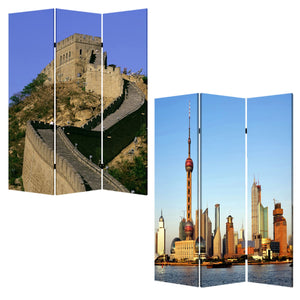 72" Blue Reversible China Cityscape Canvas Folding Three Panel Screen Room Divider
