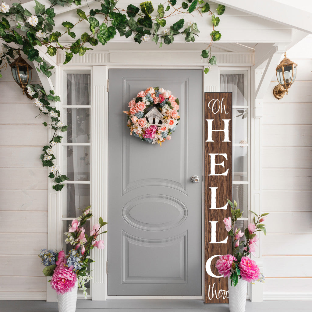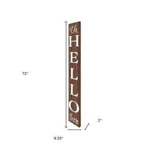 72" Brown And White Solid Wood Hello Porch Sign