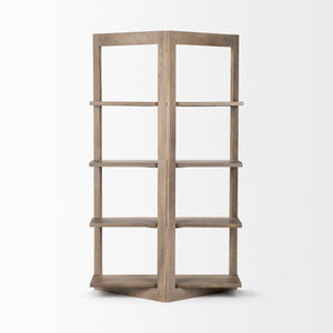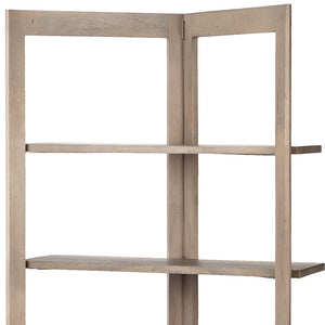 72" Brown Solid Wood and Wood Four Tier Bookcase
