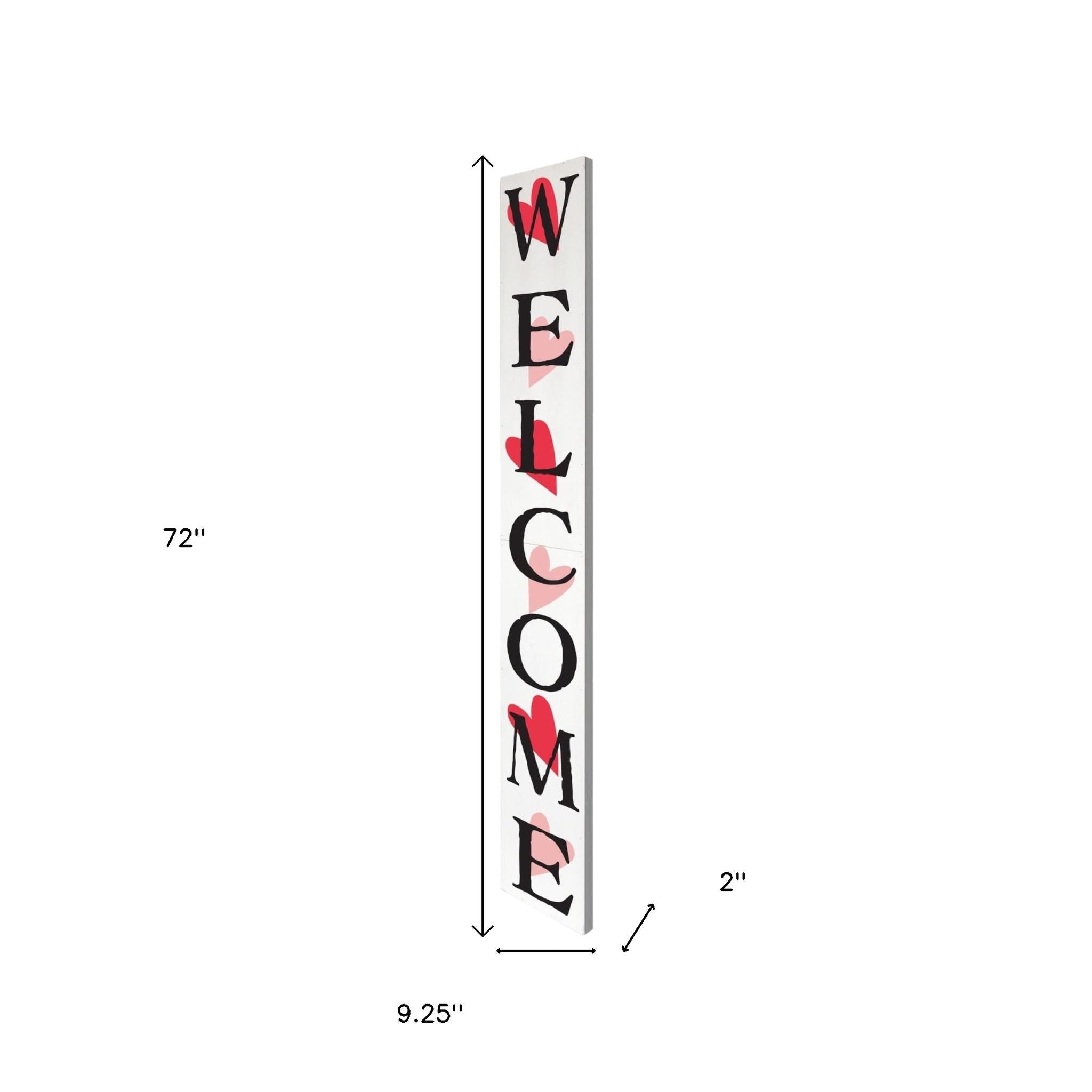72" White Black And Red Solid Wood Welcome Valentine's Day Porch Sign