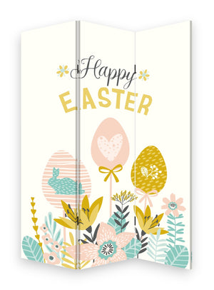 72" Yellow and White Canvas Folding Three Panel Screen Room Divider