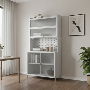 73" White Stainless Steel Textured Door Dining Hutch With Two Doors