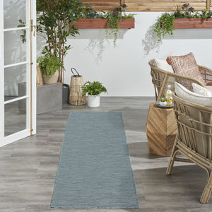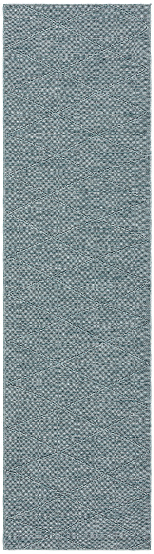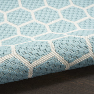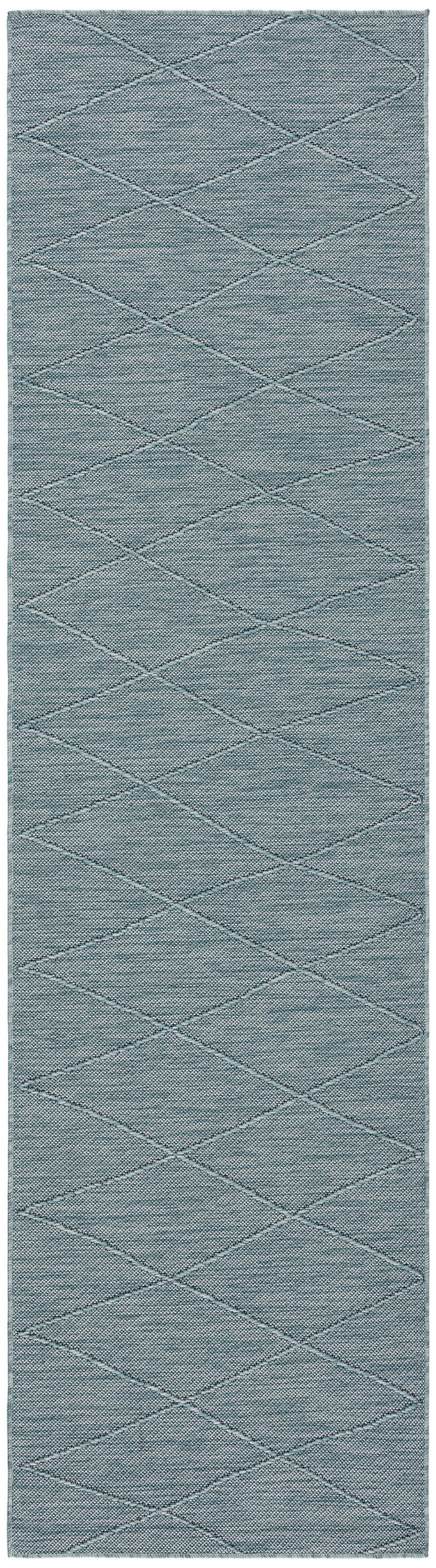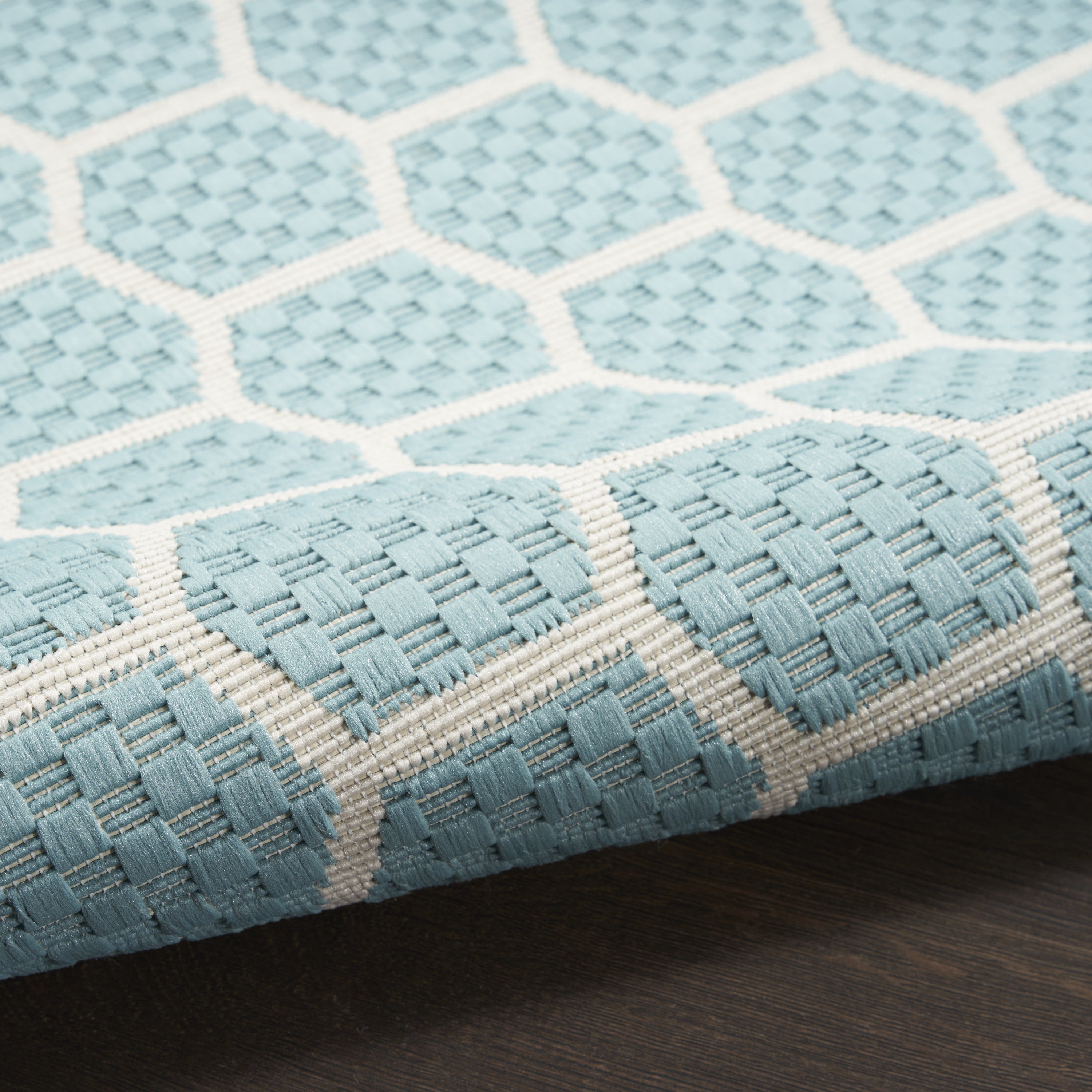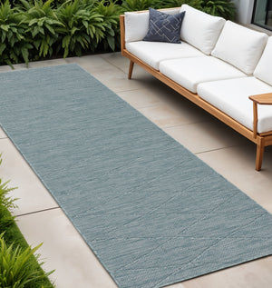 8' Aqua And Ivory Geometric Indoor Outdoor Runner Rug