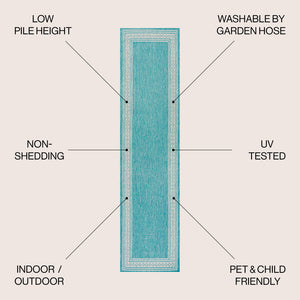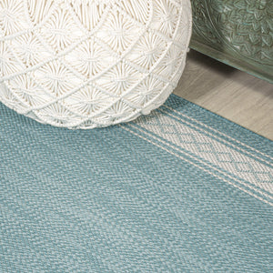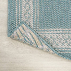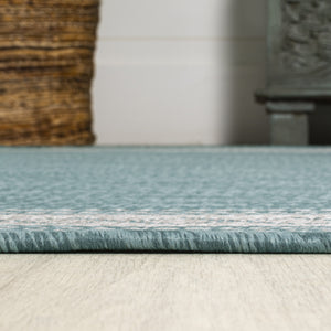 8' Aqua And Light Gray Indoor Outdoor Runner Rug