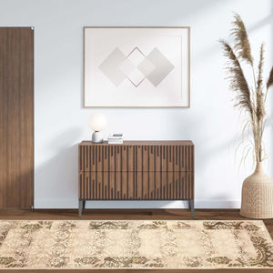 8' Beige And Brown Damask Distressed Runner Rug