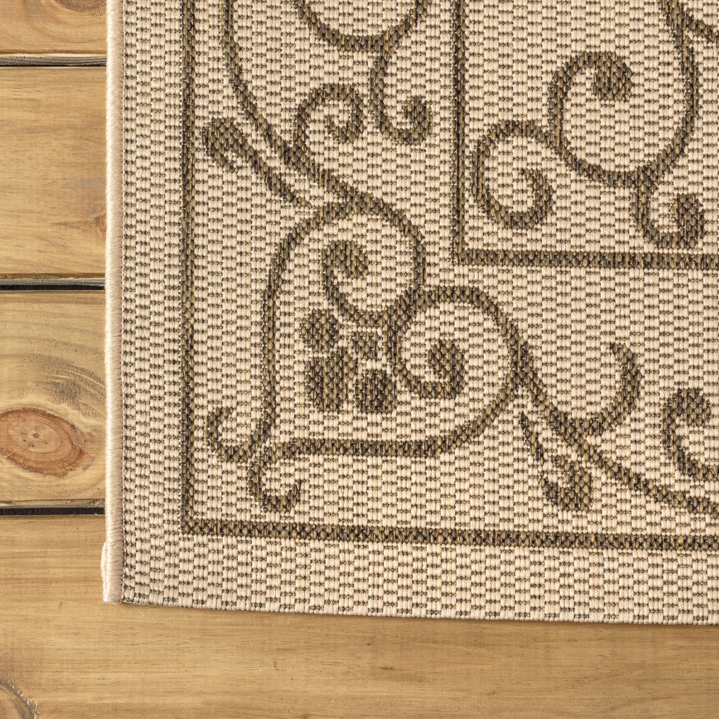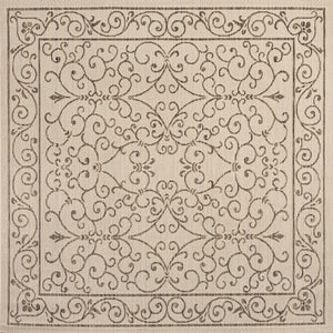 8' Beige And Brown Square Medallion Indoor Outdoor Area Rug