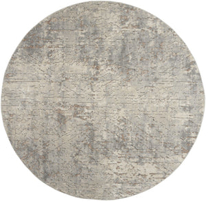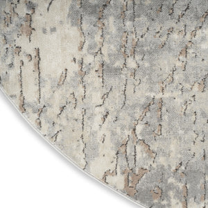 8' Beige and Gray Round Abstract Power Loom Area Rug