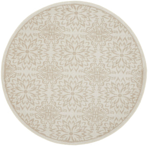 8' Beige and Ivory Floral Non Skid Round Rug