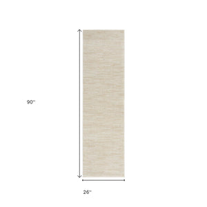 8' Beige And Ivory Indoor Outdoor Runner Rug