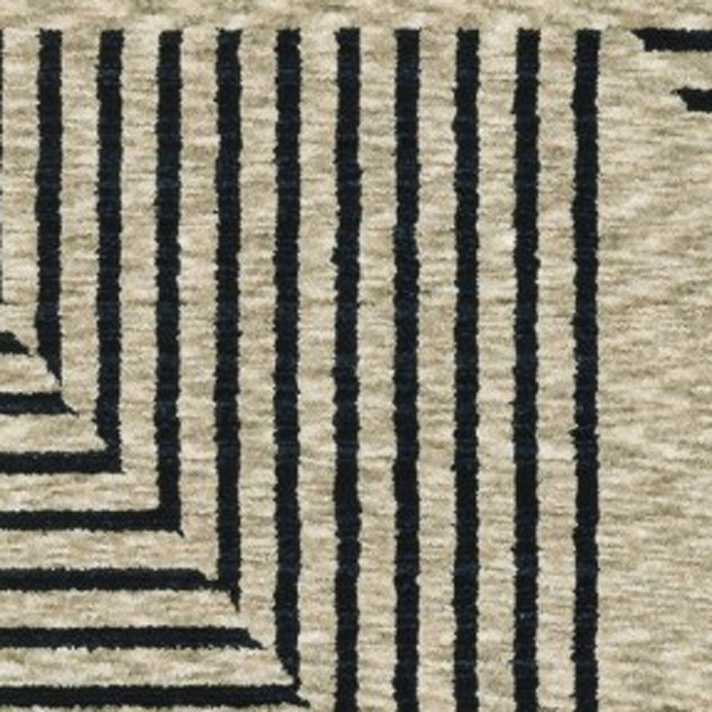 8' Beige Geometric Runner Rug With Fringe