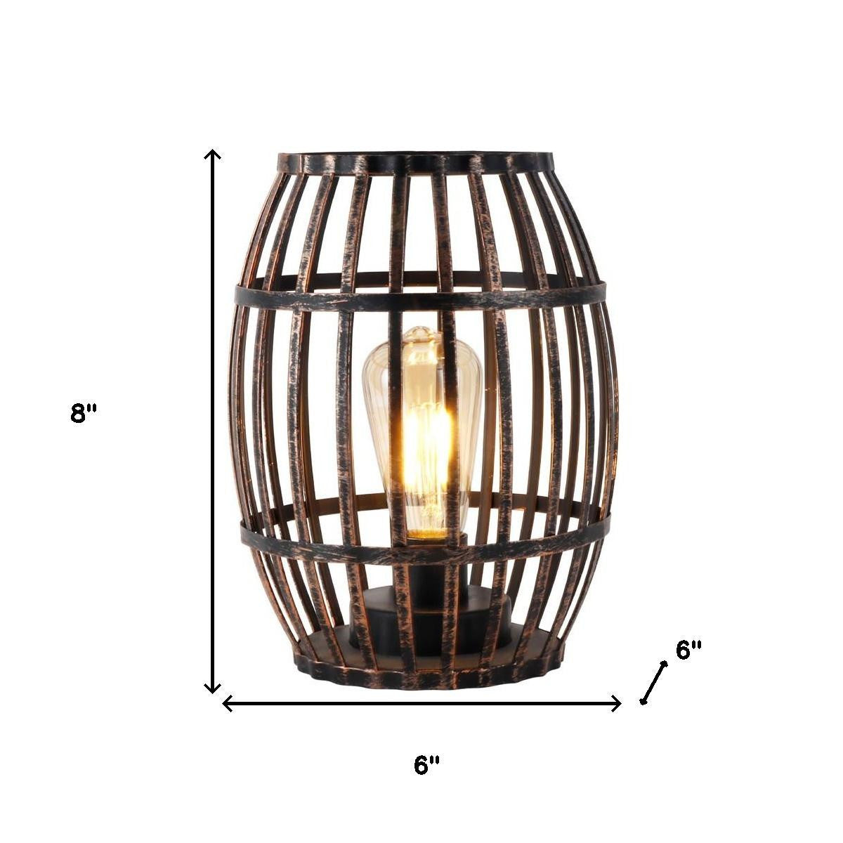 8" Black Battery Operated Novelty Bedside Lamp With Cage Shade
