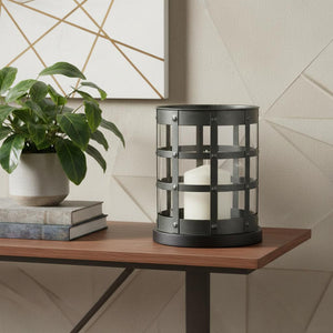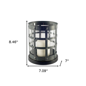 8" Black Distressed Lattice Metal And Glass Tabletop Hurricane Candle Holder