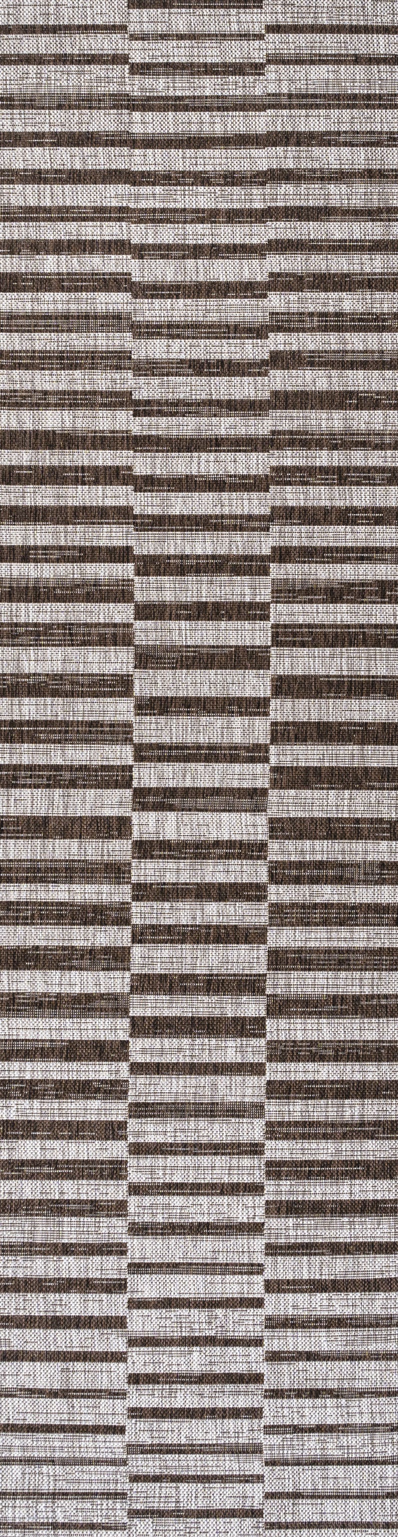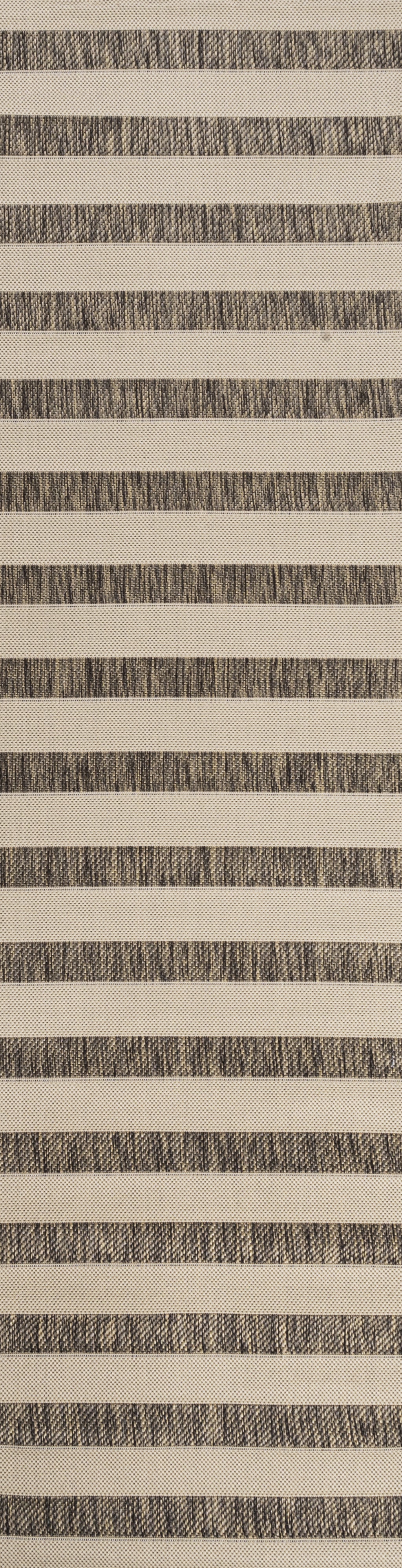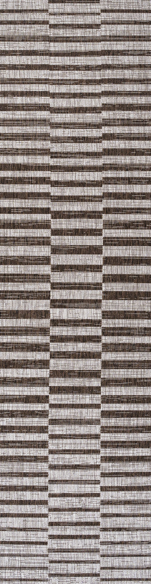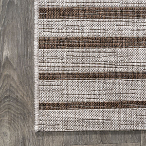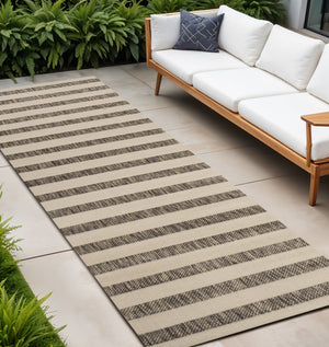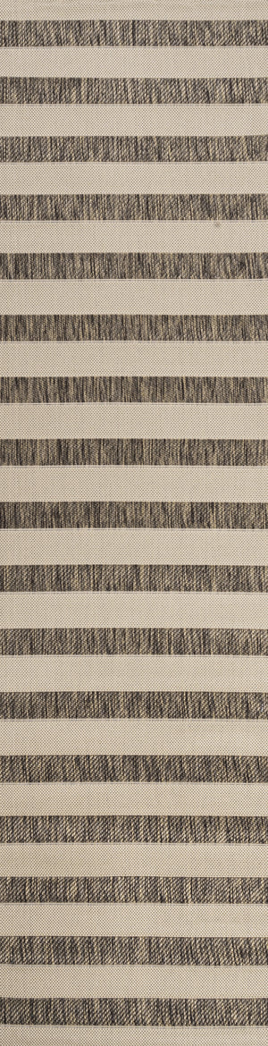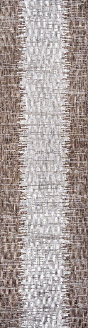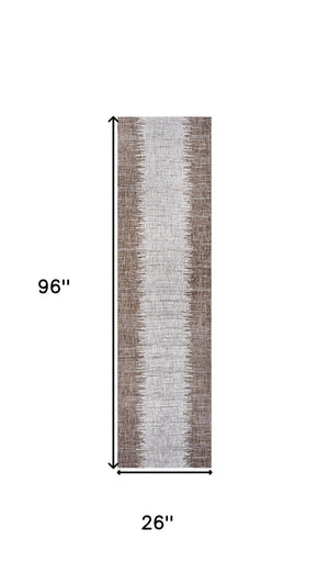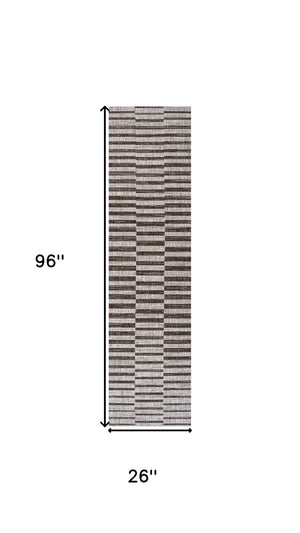 8' Beige And Brown Striped Indoor Outdoor Runner Rug