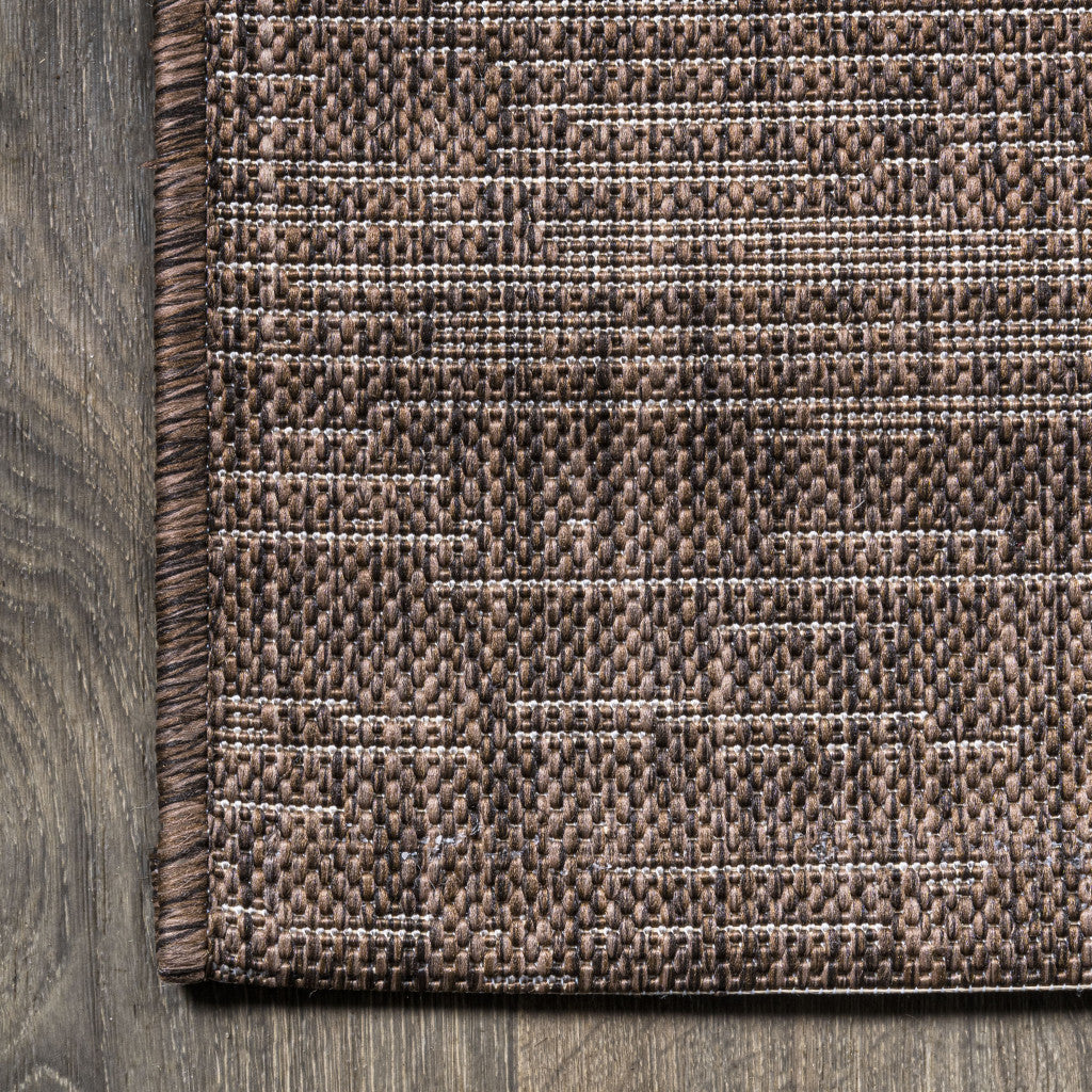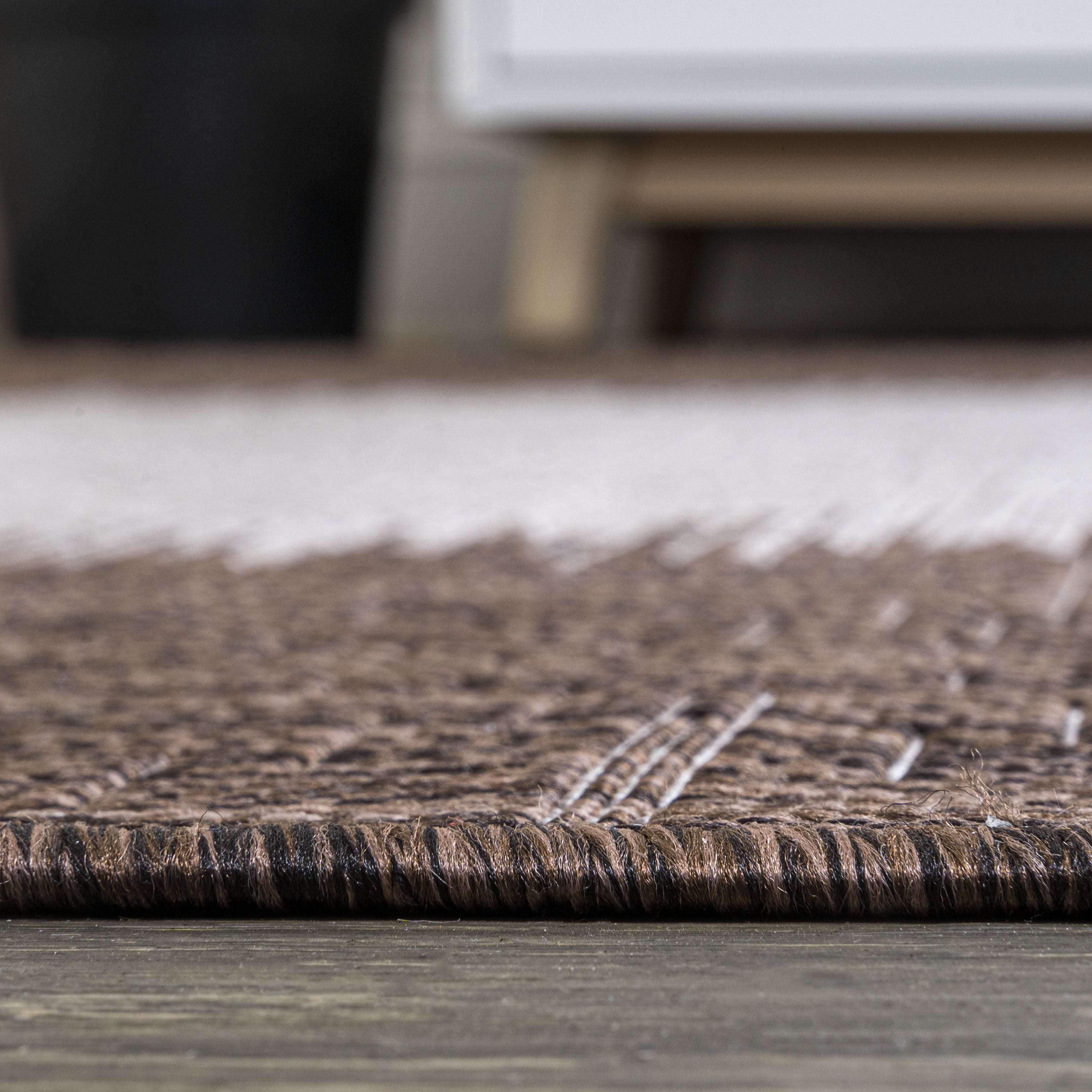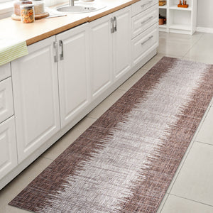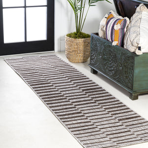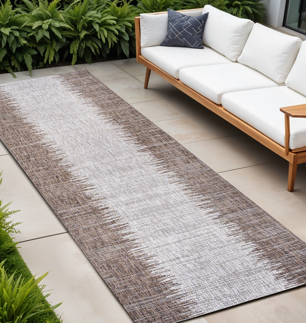 8' Beige And Brown Striped Indoor Outdoor Runner Rug