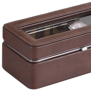 8" Brown Clear And Silver Faux Leather And Glass Six Section Watch Box With Metal Accents