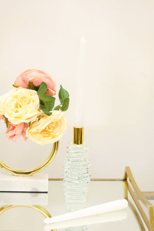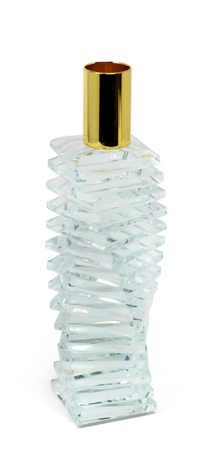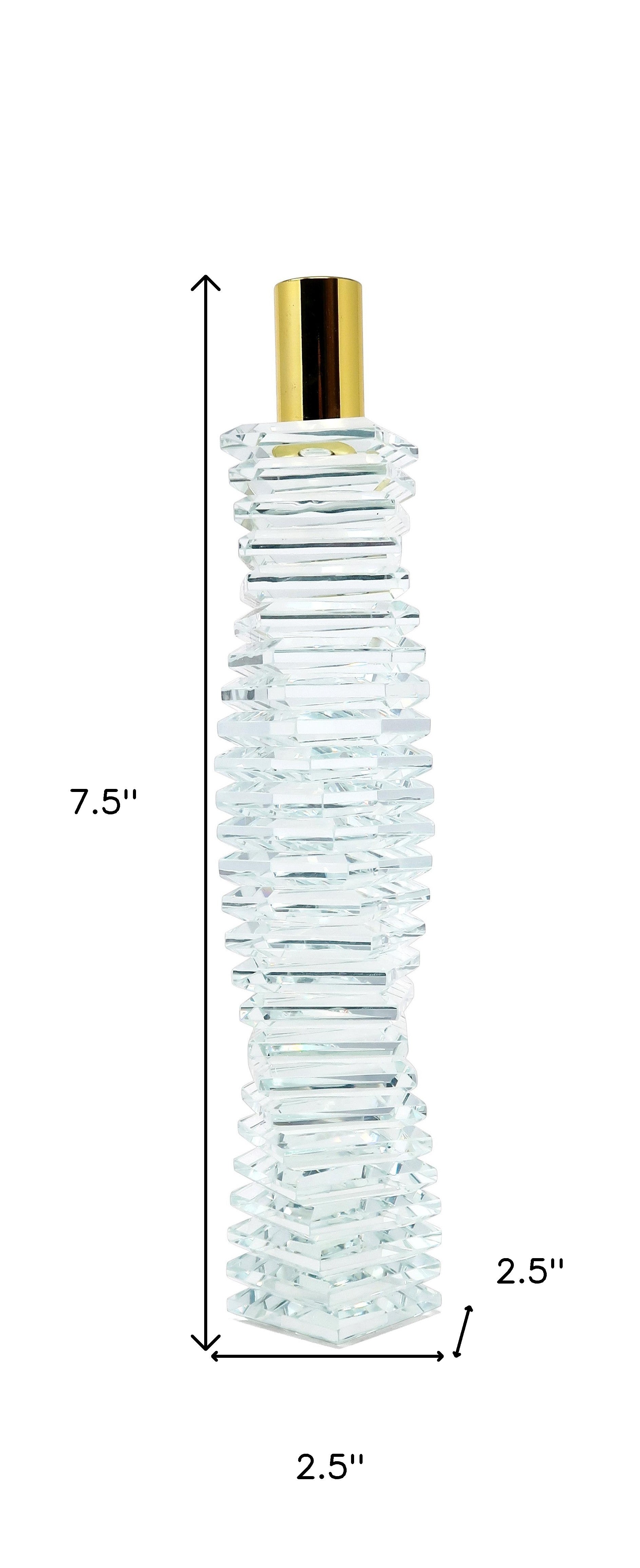 8" Clear And Gold Twisted Crystal Tabletop Taper Candlestick