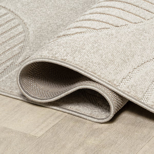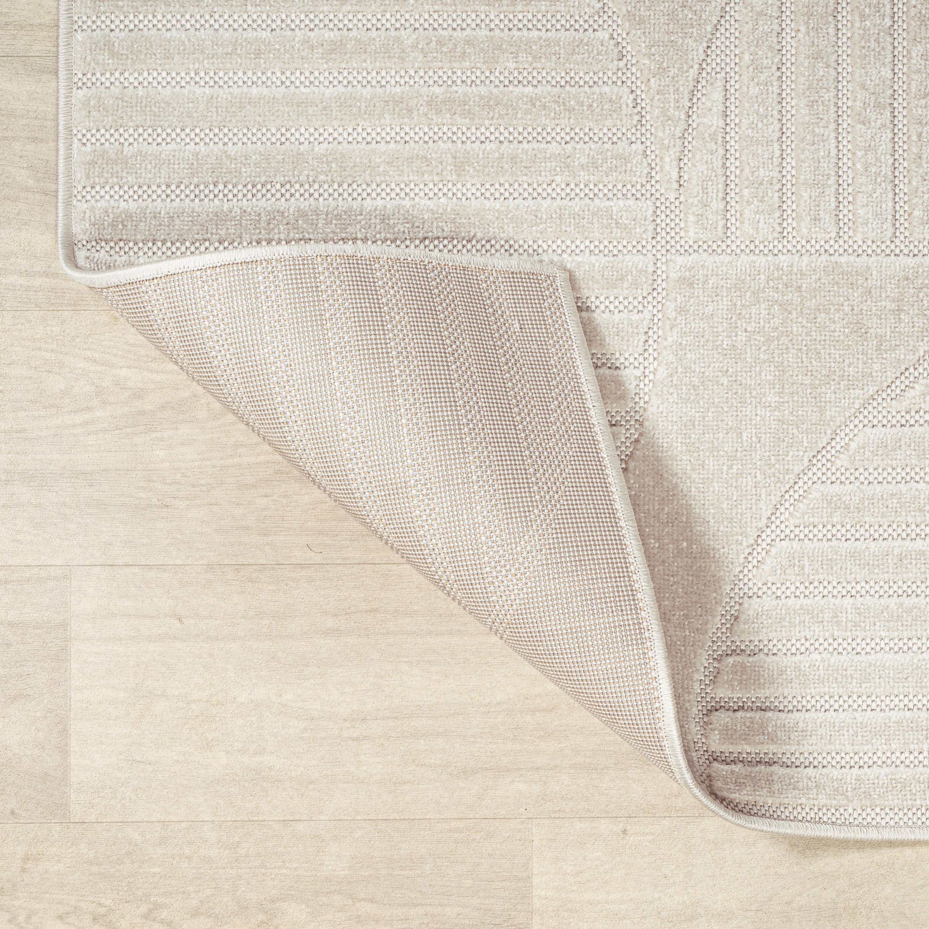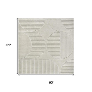 8' Ivory And Cream Square Striped Indoor Outdoor Area Rug