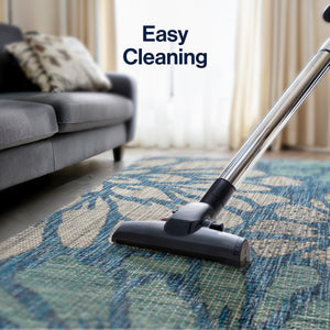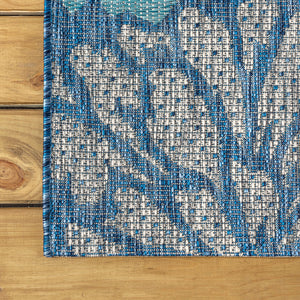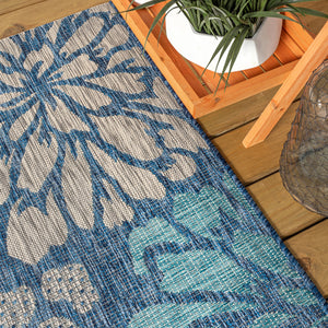 8' Navy Blue And Aqua Square Floral Indoor Outdoor Area Rug