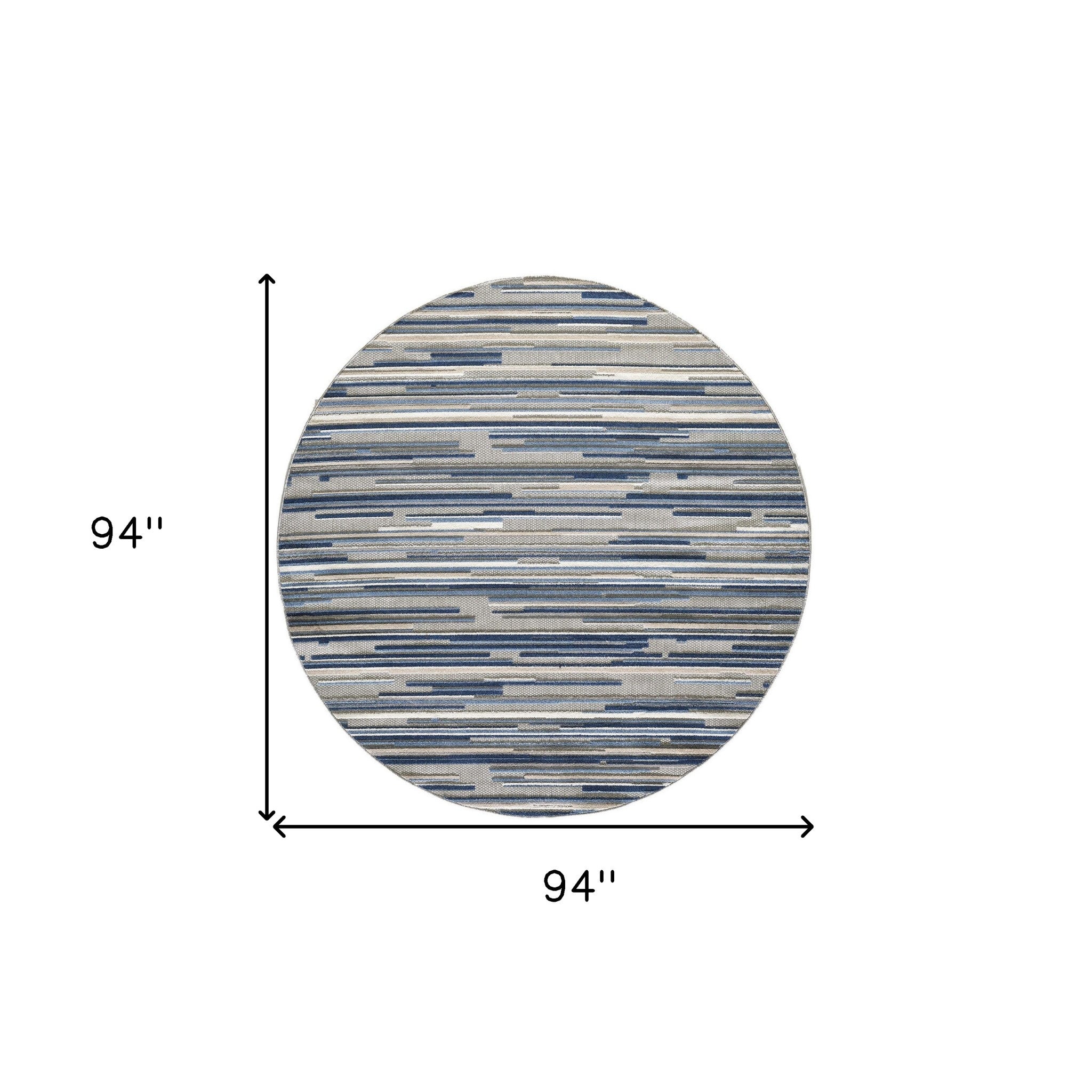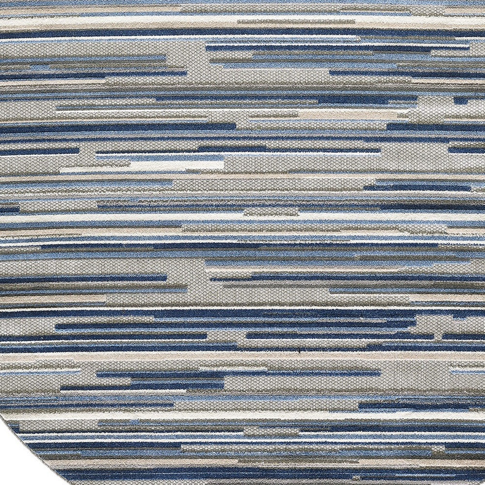 8’ Round Blue Abstract Striped Indoor Outdoor Area Rug