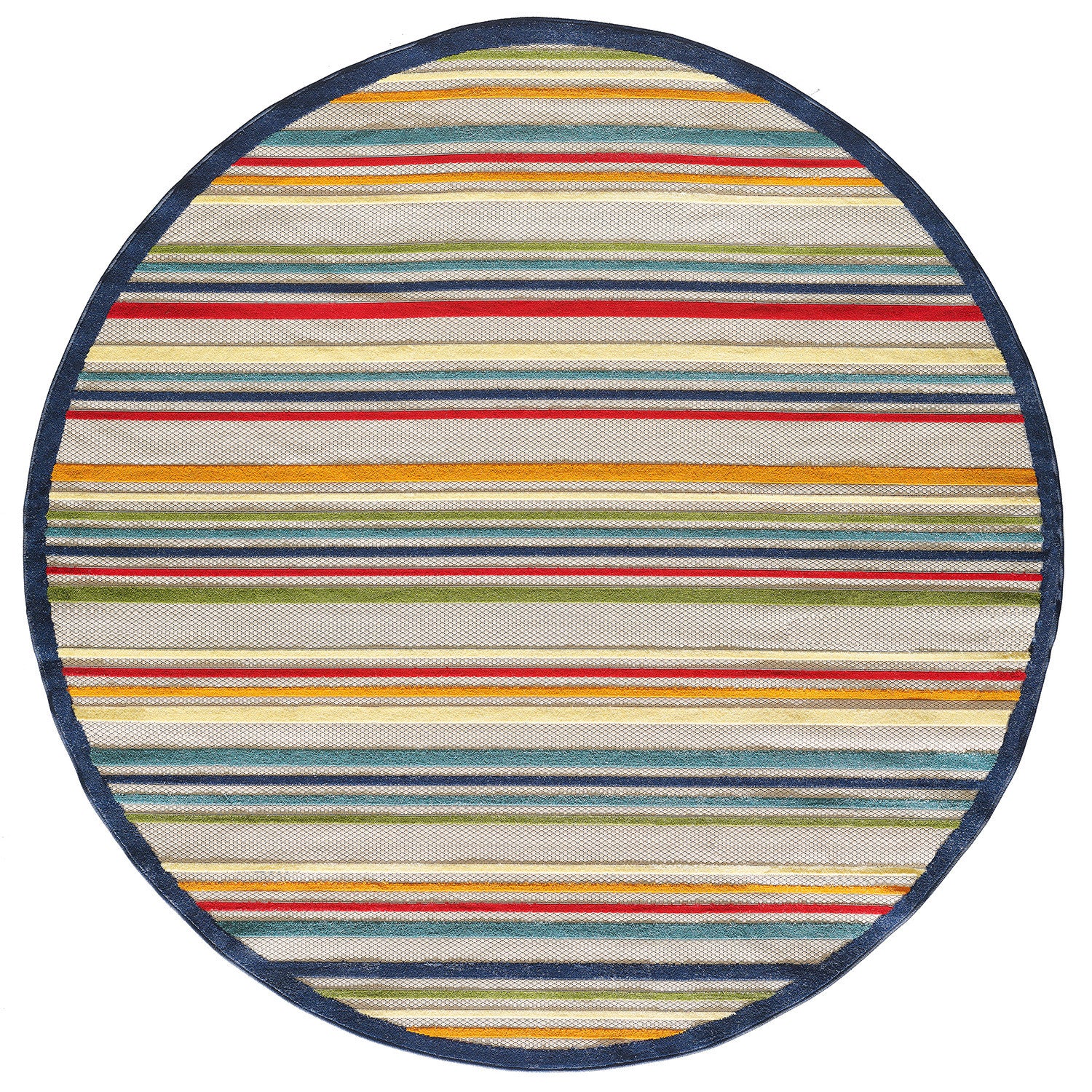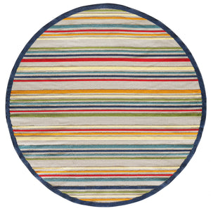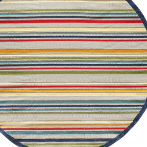 8' Round Ivory And Blue Round Striped Stain Resistant Indoor Outdoor Area Rug