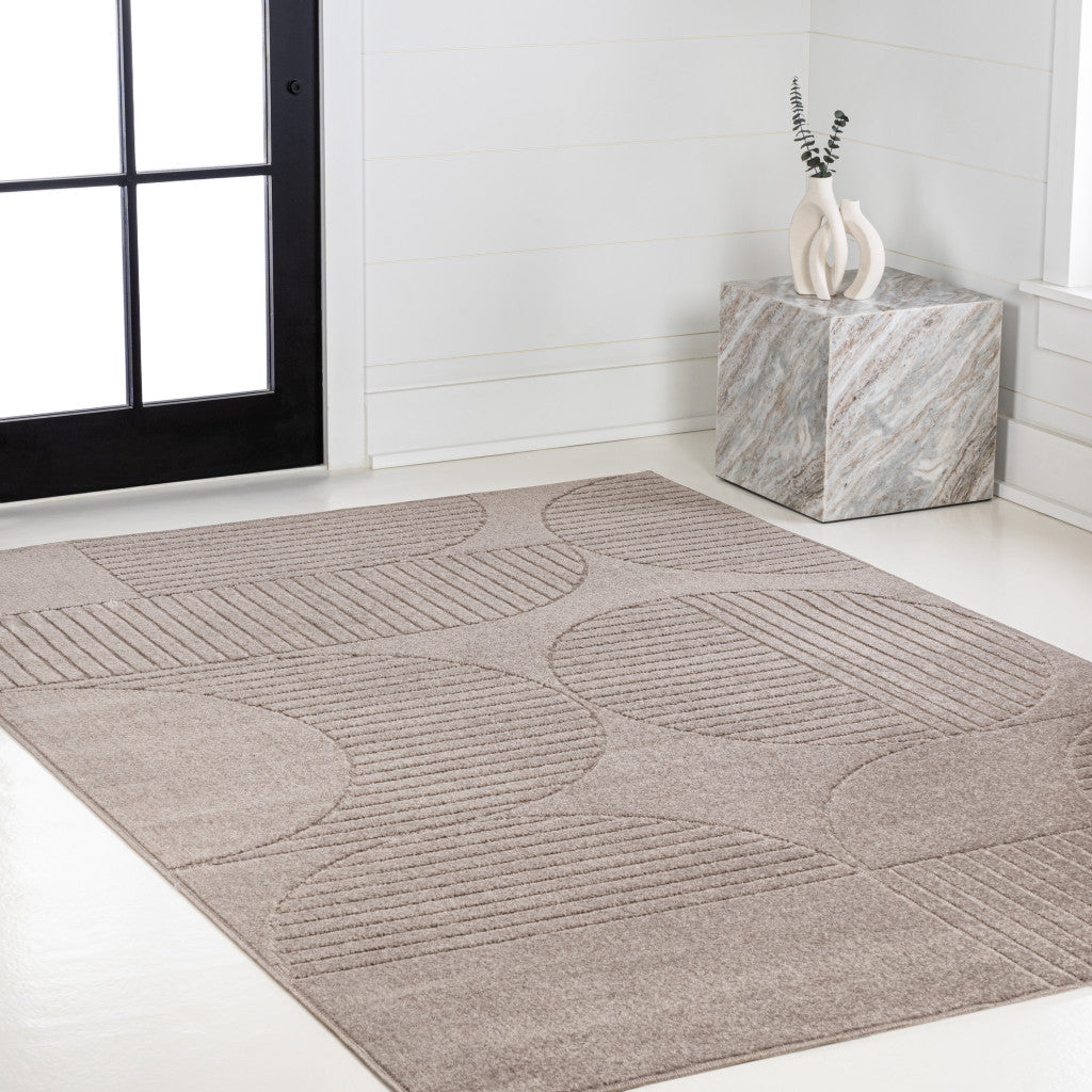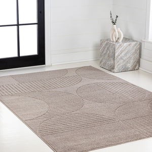 8' X 10' Taupe And Beige Striped Indoor Outdoor Area Rug