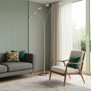 82" Nickel Five Light Led Arc Floor Lamp