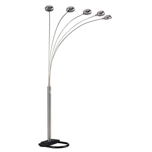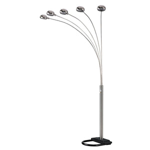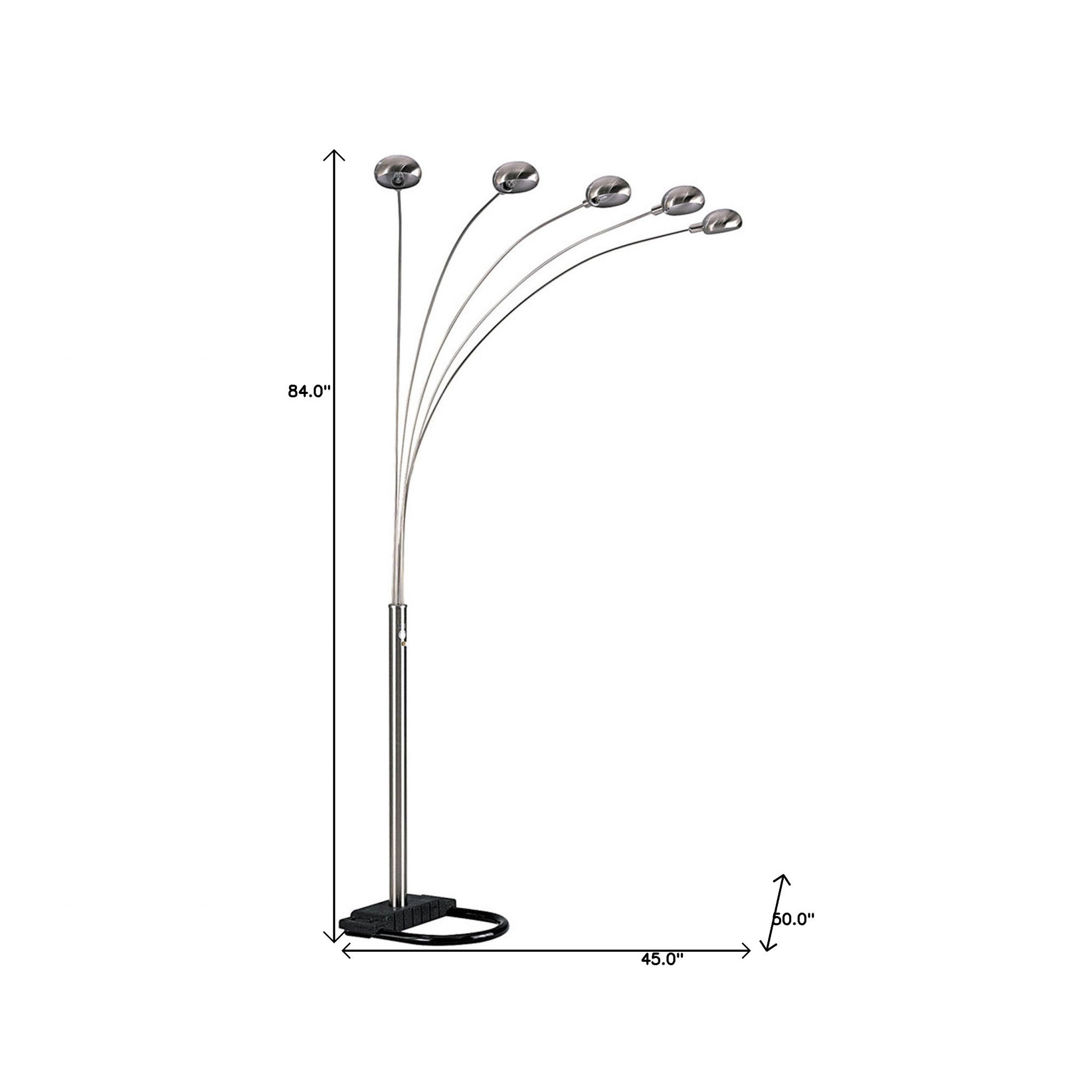 84" Nickel Five Lights Arc Floor Lamp With Nickel Dome Shade