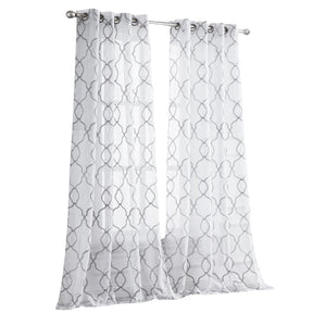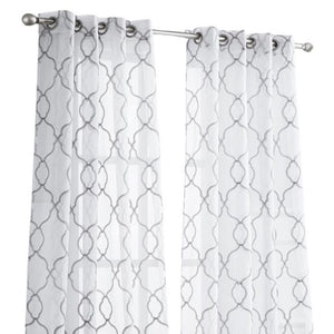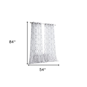 84” Silver Trellis Pattern Embroidered Window Curtain Panel