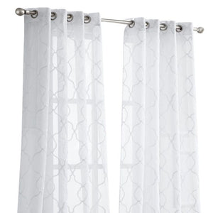 84” White Trellis Pattern Embroidered Window Curtain Panel