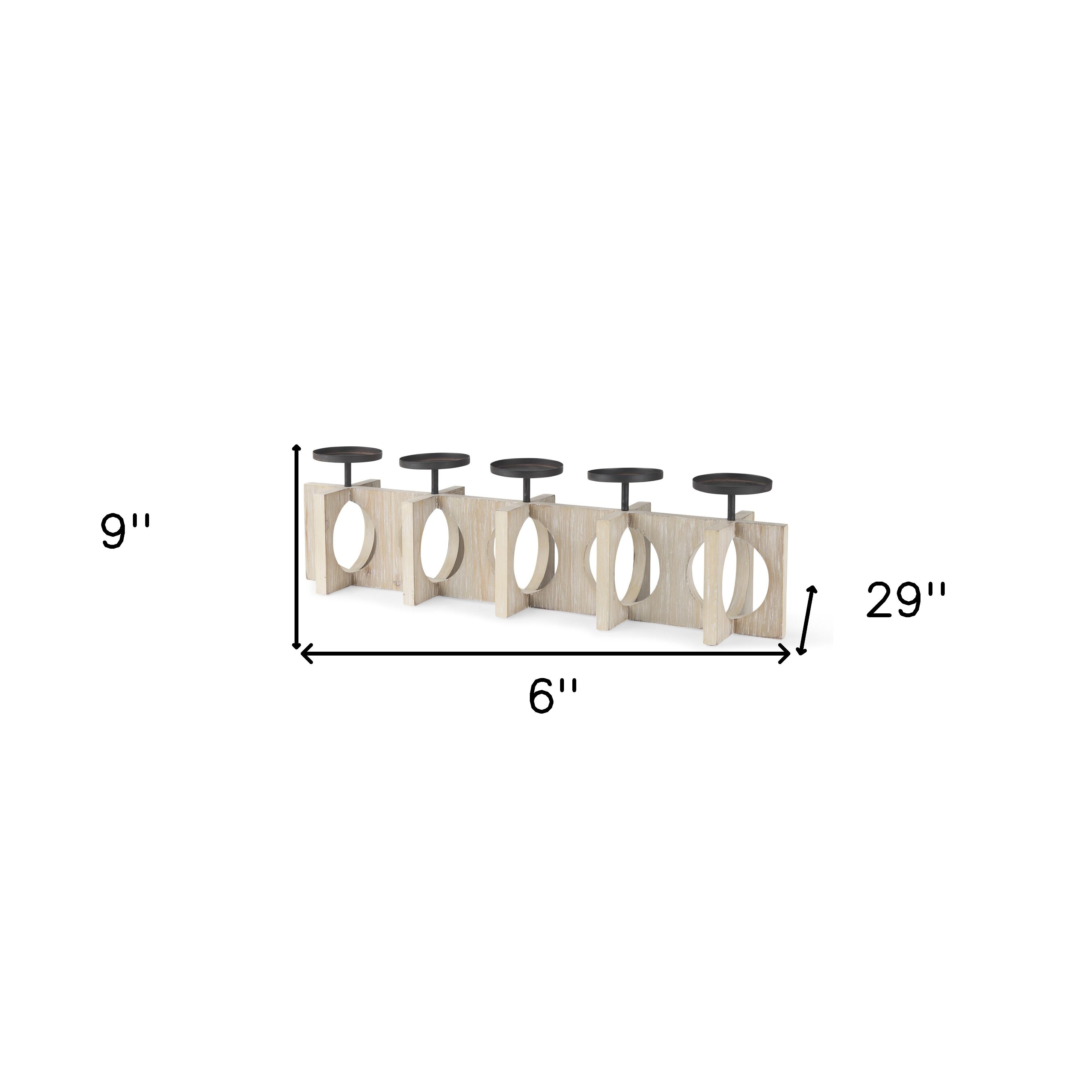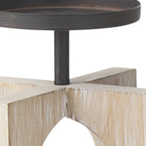 9" Black Distressed Geometric Solid Wood And Metal Tabletop Pillar Candle Holder