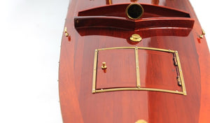 9" Blue and Brown Solid Wood Hand Painted Model Boat Tabletop Sculpture