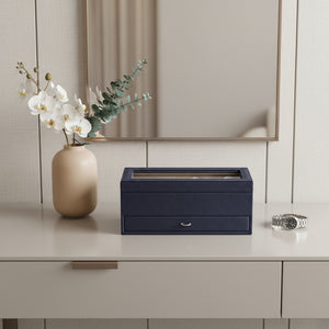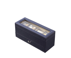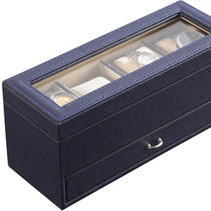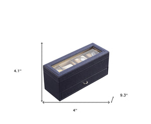 9" Blue And Clear Faux Leather And Glass Four Section Watch Box With Metal Accents