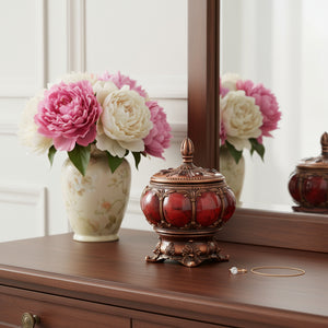 9" Brown Red And Bronze Resin Marbleized Jewelry Box With Gemstones and Crystals