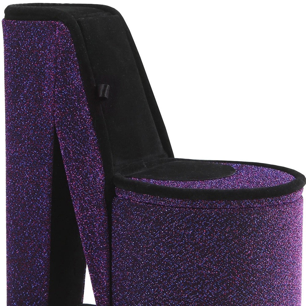 9" Purple And Black Glitter Velvet High Heel Jewelry Box