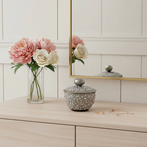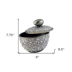 9" Silver Resin Jewelry Box With Gemstones and Crystals