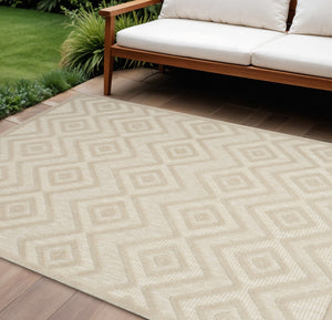 9' X 12' Cream And Beige Geometric Indoor Outdoor Area Rug
